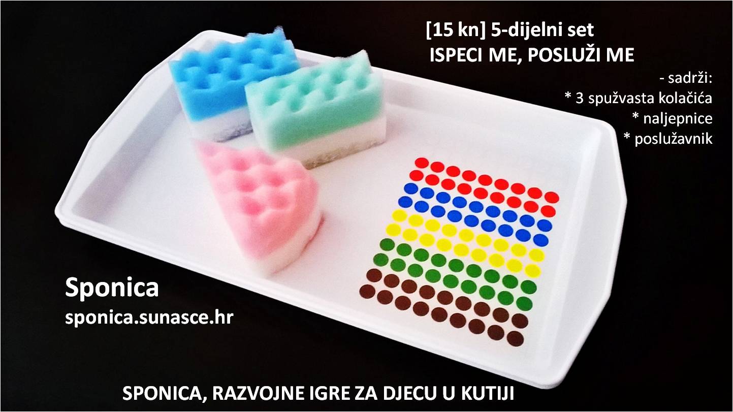 3. SPONICA midi BOX (109 kn) – 15 drvenih kvačica – 20 raznobojnih pompona – 30 drvenih spatula – knjižicu s aktivnostima – plastificirane kartice sa zadacima (48 kom) – magnetnu ploču za aktivnosti (također i za pisanje) – 5 poklona iznenađenja
